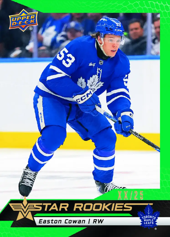 Each NHL® Star Rookies Box Set contains the complete 25-card base set featuring the premier 2025-26 rookies!