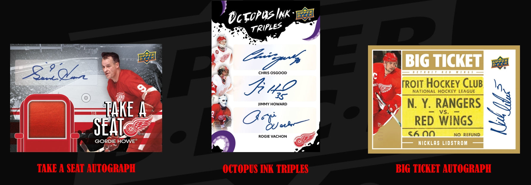 • Hunt for super-rare Cut Signatures of Red Wings Greats. Featuring all-time greats of the game, these rare cards are sure to be some of the most desired chase cards in the entire set!